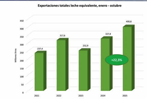 Exportaciones de leche equivalente acumulan alza de 22,3% al mes de octubre