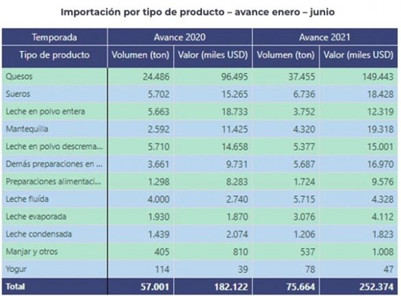 Las importaciones de productos lácteos cierran el primer semestre con un aumento de un 38,6%